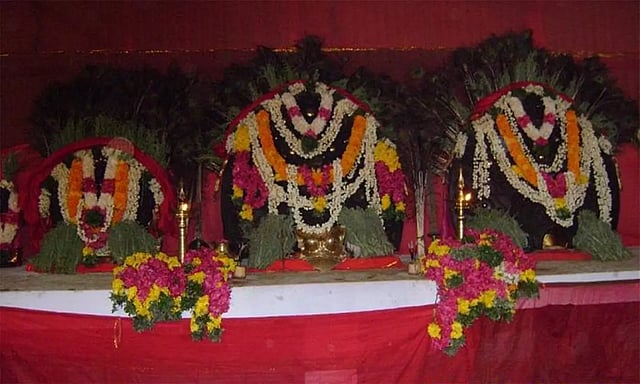 அவர்களின் உடல் கிடைக்கவில்லை. முடிக்கற்றைகள் மட்டுமே கிடைத்தன. கணியனின் ஆணைப்படி அந்த முடிக்கற்றைகளை தெய்வமாக கோயிலில் வைத்து அவர்களின் குடும்பம் வழிபட்டது. மூன்று முடிகளுடன் வெள்ளிப்பிள்ளை என்னும் சிறிய சிலையும் அங்கே நிறுவப்பட்டது.
