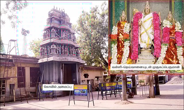 சிவன் சன்னிதிக்கு பின்புறம் தான் சுப்பிரமணியர், வள்ளி, தெய்வானையுடன் மணக்கோலத்தில் காட்சி தருகிறார். இது சிவத்தலம் என்றாலும், இவரே விசேஷ மூர்த்தியாக வணங்கப்படுகிறார். கந்த சஷ்டியின்போது முருகன்-தெய்வானைக்கும், பங்குனி உத்திர திருவிழாவில் முருகன்-வள்ளி திருக்கல்யாணம் நடக்கும். வள்ளி திருமணத்தின்போது, முருகனுக்கு வேடன், கிழவன் போல அலங்காரம் செய்தும், யானையால் வள்ளி விரட்டப்படுவது போலவும் பாவனையாகச் செய்வர். தைப்பூசத்தன்று அருகிலுள்ள 4 கோவில் சுவாமிகளுடன், முருகன் சேர்ந்து பஞ்ச மூர்த்திகளாக காட்சி தருவார்.
