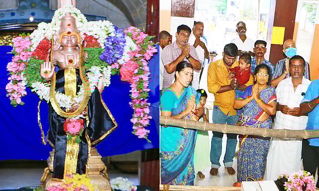 முப்பெரும் தெய்வங்களான பிரம்மா, விஷ்ணு, சிவன் ஆகியோர் இந்த சுயம்பு சனீஸ்வர பகவானுக்குள் ஐக்கியம் என்பதால் இங்கு மூலவர் 6 கண்களுடன் காட்சி அளிக்கிறார். இந்த கோவிலில் வருடந்தோறும் ஆடி மாதம் சனிக்கிழமைகளில் திருவிழா நடைபெறுவது வழக்கம். இதற்காக தமிழகத்தின் பல்வேறு பகுதிகளில் இருந்து பக்தர்கள் வருகை தருவார்கள்.