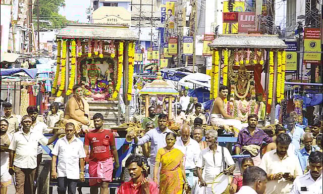 பின்னா் பஞ்ச வாத்தியங்கள் முழங்க சுவாமி-அம்பாள் குடவரைவாயில் தீபாராதனையுடன் கோவிலின் வெளியே வந்தனா். நெல்லை சிவகணங்கள் பஞ்சவாத்திய இசையில் மங்கள வாத்தியங்கள் முழங்க 4 ரத வீதிகளிலும் வீதி உலா நடந்தது. அப்போது வேதபாராயணம் மற்றும் சிவனடியாா்களால் பன்னிரு திருமுறை பாராயணமும் பாடப்பட்டது. விழாவில் திரளான பக்தா்கள் கலந்து கொண்டு சாமி தாிசனம் செய்தனா்.