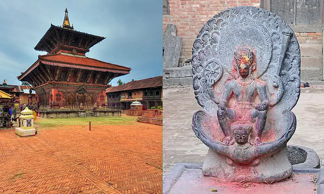 இந்த கோவிலின் கதவுகள், ஜன்னல்கள் மற்றும் கூரைகள் அனைத்தும் தங்கம் கலந்த செப்புத் தகடுகளால் வேயப்பட்டுள்ளது. இதனை கி.பி.1708-ம் ஆண்டு இப்பகுதியை ஆட்சி செய்த பாஸ்கர மல்லர் என்ற மன்னன் செய்திருக்கிறான். கருங்கற்களால் இரண்டு அடுக்குகளாக கட்டப்பட்ட இந்த ஆலயம், நேபாள நாட்டிலேயே மிகவும் பழமையானது என்று போற்றப்படுகிறது. இந்த கோவிலைச் சுற்றிலும் திருமாலுக்கு உரிய சிற்பங்கள் அதிகமாக செதுக்கப்பட்டுள்ளன.