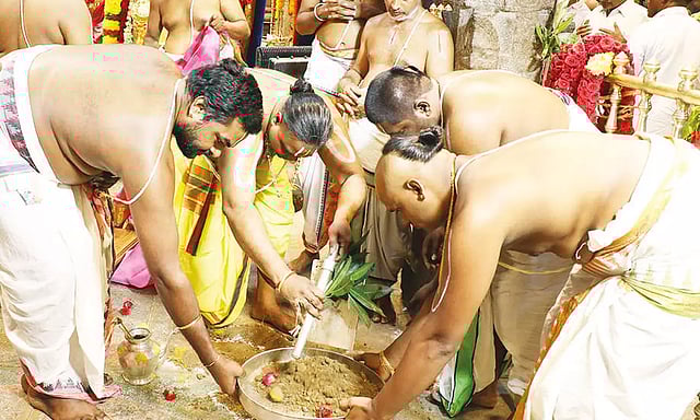 திருப்பதியை அடுத்த சீனிவாசமங்காபுரத்தில் உள்ள கல்யாண வெங்கடேஸ்வரர் கோவிலில் இன்று (வியாழக்கிழமை) வருடாந்திர பிரம்மோற்சவ விழா கொடியேற்றத்துடன் தொடங்கி, அடுத்த மாதம் (மார்ச்) 8-ந்தேதி வரை 9 நாட்கள் நடக்கிறது. அதையொட்டி நேற்று அதிகாலை மூலவரை துயிலெழுப்பி சுப்ரபாதம், கொலு, பஞ்சாங்க சிரவணம், மாலை அங்குரார்ப்பணம் நடந்தது.