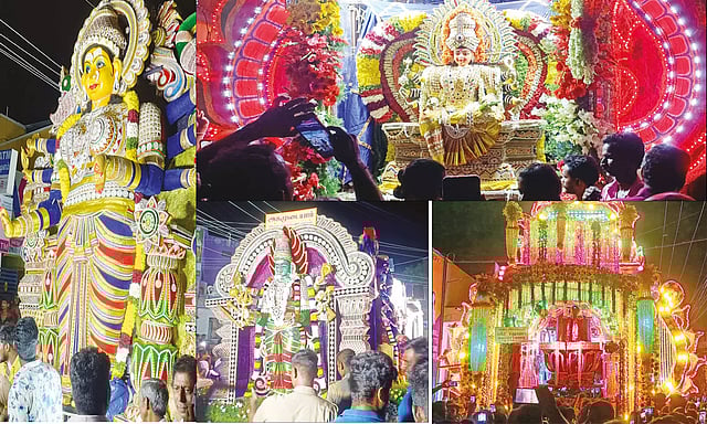 பூப்பல்லக்குகள் நகரின் முக்கிய வீதிகளின் வழியாக விடிய விடிய உலா வந்தது.