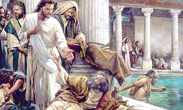 அந்த மண்டபத்தில் முப்பத்தெட்டு ஆண்டுகளாய் உடல்நலமற்றிருந்த ஒருவரும் இருந்தார். யூதர்களின் திருவிழாவிற்காக எருசலேமுக்கு வந்த இயேசு, பெத்சதா குளத்தின் அருகே சென்றார். அப்போது முப்பத்தெட்டு ஆண்டுகளாய் உடல்நலமற்றிருந்த அந்த நபரைக் கண்டார். அவர் பல வருடங்களாக நோயினால் அவதிப்பட்டவராய் இருப்பதை அறிந்த இயேசு, "நலம்பெற விரும்புகிறீரா?" என்று அவரிடம் கேட்டார்.