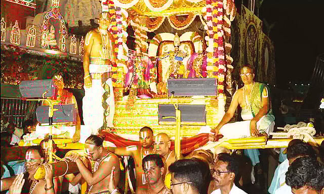 வாகன வீதிஉலாவில் திருமலை மடாதிபதிகள், தேவஸ்தான அறங்காவலர் குழு தலைவர் பூமண.கருணாகர்ரெட்டி எம்.எல்.ஏ, முதன்மைச் செயல் அலுவலர் ஏ.வி.தர்மாரெட்டி மற்றும் பலர் கலந்து கொண்டனர்.