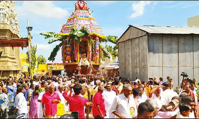 தேர் ரதவீதிகள் வழியாக மேளதாளம் முழங்க காலை 11.40 மணிக்கு நிலையை வந்தடைந்தது. நிகழ்ச்சி ஏற்பாடுகளை கோவில் நிர்வாக அதிகாரி வெள்ளைச்சாமி தலைமையில் ஆய்வாளர் சிவகலை பிரியா மற்றும் கோவில் ஊழியர்கள் செய்திருந்தனர். இரவு அம்மன் திருவீதி உலா நடந்தது.