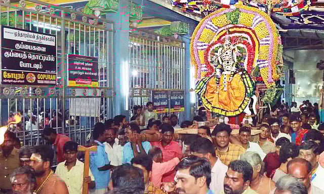 5-ம் நாளான நேற்று முன்தினம் இரவில் காமதேனு வாகனத்தில் நவநீதகிருஷ்ணர் கோலத்தில் அம்மன் எழுந்தருளி வீதி உலா சென்று பக்தர்களுக்கு அருள்பாலித்தார். இ்க்கோலத்தில் அம்மனை தரிசித்தால் வாழ்நாள் கூடும் என்பது ஐதீகம். இதனால் நூற்றுக்கணக்கான பக்தர்கள் திரண்டிருந்து அம்மனை வழிபட்டனர்.