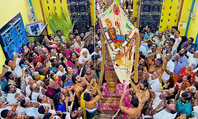 இதையொட்டி நேற்று இரவே ஏராளமான பக்தர்கள் பல்வேறு வாகனங்களில் வந்து குவிந்தனர். இன்று அதிகாலையில் அலங்கரிக்கப்பட்ட யானையில் கொடிப்பட்டம் வைத்து ஊர்வலம் நடந்தது.