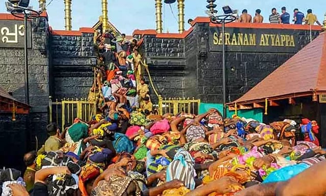 10 முதல் 50 வயதுக்குட்பட்ட பெண்கள் பல்வேறு காரணங்களால் சபரிமலை கோவிலுக்கு செல்வதற்கு அனுமதி வழங்கப்படுவதில்லை. இதற்கான முக்கிய காரணம் சுவாமி ஐயப்பன் ஒரு பிரம்மச்சாரி என்ற அதீகமே. மண்டல பூஜை என அறிவிக்கப்பட்ட நாட்களிலும், மகர விளக்கன்றும் (ஜனவரி 14 `மகா சங்கராந்தி') மற்றும் விஷு (ஏப்ரல் 14), மற்றும் ஒவ்வொரு மலையாள மாதத்தின் முதல் 5 நாட்களில் மட்டும் கோவில் பிரார்த்தனை செய்வதற்காக திறந்து வைக்கப்படுகிறது.