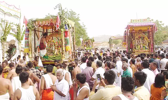 பின்னர் திருக்கல்யாண விழாவில் கலந்துகொண்ட பக்தர்கள் அனைவருக்கும் அன்னதானம் வழங்கப்பட் டது. விழாவின் சிகர நிகழ்ச் சியாக நாளை காலை 6.00 மணி அளவில் சுப்பிரமணிய சுவாமி தெய்வானையுடன் சிறப்பு அலங்காரத்தில் தேரில் எழுந்தருளுவார். பக்தர்கள் வடம் பிடித்து இழுக்க தேரில் கிரிவல பாதை வழியாக சுப்பிரம ணிய சுவாமி வலம் வந்து பக்தர்களுக்கு அருள்பாலிப் பார்.