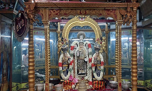 ஆனி அமாவாசையை முன்னிட்டு கண்ணாடி மண்டபத்தில் முத்தங்கி சேவையில் ஸ்ரீதேவி பூதேவி சமேதராய் வீரராகவ பெருமாள் எழுந்தருளி பக்தர்களுக்கு காட்சி அளித்தார்.