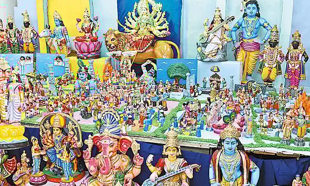 இதில் மரம், செடி, கொடி, துர்க்கையின் 9 வடிவங்கள், பறவைகள், விலங்கினங்கள் மற்றும் விவேகானந்தர், வள்ளலார், பார்வதி, சரஸ்வதி, லட்சுமிதேவி, அஷ்டலட்சுமி, திருப்பதி ஏழுமலையான், முருகன், பிரம்மா, விஷ்ணு, சிவன், குபேரன் மற்றும் தேவ, தேவியர் உள்ளிட்ட ஏராளமான பொம்மைகள் கொலுவில் இடம்பெற உள்ளது.
