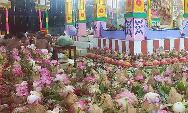நேற்று காலை 9 மணிக்கு 4-வது கால யாகசாலை பூஜைகளும், சதுர்லெக்ச ஜெபமும், மதியம் 12 மணிக்கு 4-வது கால பூர்ணாகுதி மற்றும் தீபாராதனையும், மாலை 5 மணிக்கு 5-வது கால யாக பூஜை மற்றும் சதுர்லெக்ச ஜெபமும், இரவு 8.30 மணிக்கு 5-வது கால பூர்ணாகுதி மற்றும் தீபாராதனையும் நடைபெற்றது.