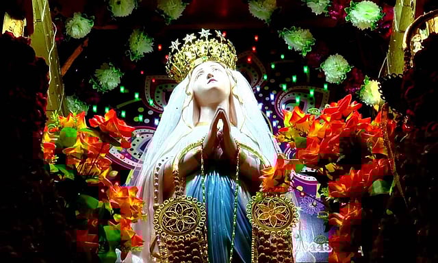 தஞ்சை மாவட்டம் திருக்காட்டுப்பள்ளி அருகே உள்ள பூண்டி மாதா பேராலயத்தில் மாதா பிறப்பு பெருவிழா கடந்த மாதம்(ஆகஸ்டு) 30-ந் தேதி கொடியேற்றத்துடன் தொடங்கியது. விழா நாட்களில் தினமும் மாலை சிறு சப்பர பவனியும், திருப்பலியும் நடைபெற்று வருகிறது. விழாவின் 9-ம் நாளான நேற்று (புதன்கிழமை) மாலை மறைவட்ட முதன்மை குரு இன்னசென்ட், `மரியாள் தியாகத்தின் சிகரம்' என்ற பொருளில் திருப்பலி நிறைவேற்றினார்.