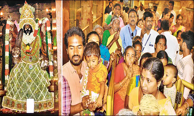 கிராமப்புறங்களில் இருந்து ஆயிரக்கணக்கான பக்தர்கள் முதல்நாள் இரவு வந்து கோவிலில் தங்கியிருந்து அம்மனை தரிசனம் செய்தனர். அம்மனுக்கு ஆவணிமாதம் ஒவ்வொரு வாரமும் சிறப்பு அலங்காரம் செய்யப்படும். முதல் ஞாயிற்றுக்கிழமை மலர்அலங்காரம் செய்யப்பட்டு இருந்தது. 2-வது ஞாயிற்றுக்கிழமையான நேற்று மரிக்கொழுந்து அலங்காரம் செய்யப்பட்டு இருந்தது. இதில், பக்தர்கள் நீண்ட வரிசையில் காத்திருந்து அம்மனை தரிசனம் செய்தனர்.
