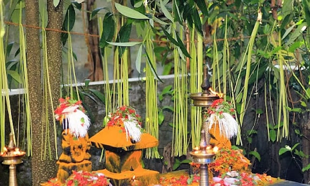 இந்த பூஜையின் போது மஞ்சள், அரிசி மாவு, பால், கதலிப்பழம், கமுகு ஆகிய ஐந்தும் கலந்து நாகராஜாவுக்கு நைவேத்தியம் செய்யப்படும். கதலிப்பழம் நாகராஜாவுக்கு மிகமிக விருப்பமானதாகும். எனவே இந்த நைவேத்திய பூஜை மூலம் நாகரின் அருளை பக்தர்கள் பெறமுடியும்.