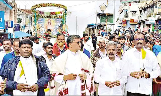 இந்நிகழ்ச்சியில் நகராட்சி தலைவர் செல்லத்துரை, துணை தலைவர் மாயக்கண்ணன், முன்னாள் நகராட்சி தலைவர்கள் முகமது இபுராகிம், ஸ்ரீதர் உள்பட பலர் கலந்து கொண்டனர். 15 நாட்கள் நடக்கும் இந்த விழாவில் தினமும் சிறப்பு திருப்பலி நடத்தப்படுகிறது. விழாவின் முக்கிய நாளான வருகிற 14-ந்தேதி இரவும், 15-ந்தேதி பகலிலும் தேர்பவனி நடக்கிறது. விழா ஏற்பாடுகளை பங்குத்தந்தையினர், பங்கு பேரவையினர், அருட்சகோதரிகள் மற்றும் பொதுமக்கள் செய்து வருகின்றனர்.