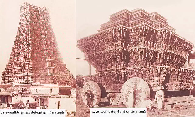 * ஆண்டாள் கோவில் தேரில் ராமாயணம், மகாபாரதம் சிற்பங்கள் இடம் பெற்றுள்ளன. அதேபோல ஆண்டாளின் வாழ்க்கை வரலாறு, 64 கலைகள் குறித்த சிற்பங்கள் அனைத்தும் இந்தத் தேரில் செதுக்கப்பட்டுள்ளன.