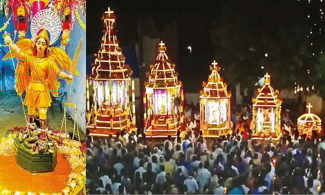 தொடர்ந்து மின்விளக்கு களால் அலங்கரிக்கப்பட்ட சப்பரங்களில் தூய மிக்கேல் அதிதூதர், புனித சந்தியாகப்பர், இன்னாசியார், புனித சவேரியார், புனித சூசையப்பர், அன்னை மரியாள் ஆகியோர் கிராமத்தின் முக்கிய வீதிகள் வழியாக பவனியாக வந்து பொதுமக்களுக்கு இறை ஆசீர் வழங்கினர்.