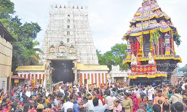 தேரோட்டத்தை மேயர் மகேஷ் வடம் பிடித்து தொடங்கி வைத்தார்.