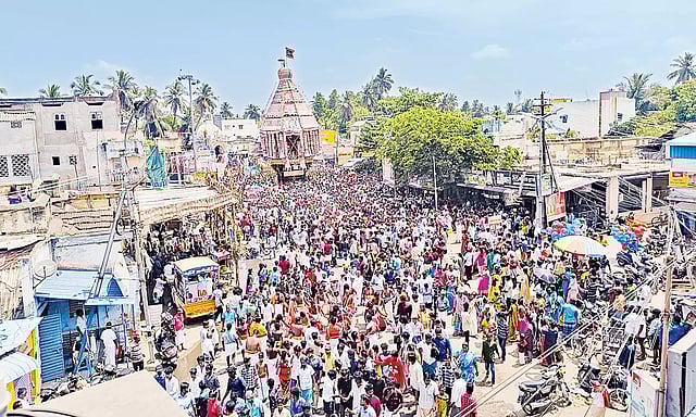 தொடர்ந்து ஆயிரக்கணக்கான பக்தர்கள் வடம் பிடித்து தேரை இழுத்துச் சென்றனர். திருவையாறு நான்கு ராஜ வீதிகளில் தேர் பக்தர்கள் வெள்ளத்தில் அசைந்தாடி வந்தது. இன்று மாலையில் தேர் நிலையை வந்து அடையும். அப்போது தீபாரதனை காண்பிக்கப்பட்டு பக்தர்களுக்கு பிரசாதம் வழங்கப்படும்.