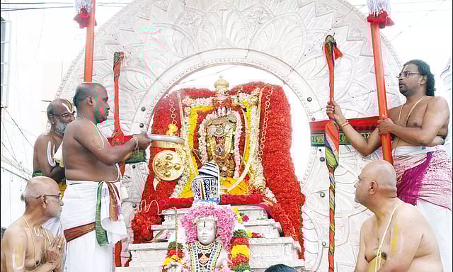 மேற்கண்ட நிகழ்ச்சிகளில் திருமலை பெரிய, சின்ன ஜீயர் சுவாமிகள், கோவில் துணை அதிகாரி நாகரத்னா, உதவி அதிகாரி மோகன், கண்காணிப்பாளர் ரமேஷ் மற்றும் பக்தர்கள் கலந்து கொண்டனர்.