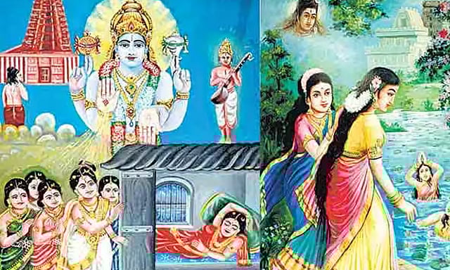 அழகிய ஆபரணங்களை அணிந்த பெண்களே! ஆயர்பாடியில் பிறந்த செல்வச் சிறப்புமிக்க சிறு பெண்களே ! இது மார்கழி மாதம். முழு நிலவு ஒளி வீசும் நாள். இந்த நாளில் நீராடச்செல்வோம். கூர்மையான வேல் உள்ளவனும், பகைவர்களுக்கு கொடுமை செய்பவனும் ஆன நந்தகோபனின் குமாரன், அழகு நிறைந்த கண்களைக் கொண்ட யசோதை பிராட்டிக்கு இளம் சிங்கம் போன்றவன், கார்மேகம் போன்ற உடல் அமைந்தவன், செந்தாமரை போன்ற கண்களையும், சூரியன் மற்றும் சந்திரன் போன்று பிரகாசிக்கும் முகத்தையும் கொண்ட ஸ்ரீமன் நாராயணன், நாம் விரும்பிய வரத்தைத் தருவான். அதனால் உலகத்தார் அனைவரும் புகழும் வண்ணம் நீராடி மகிழ்வோம்; வாருங்கள்!