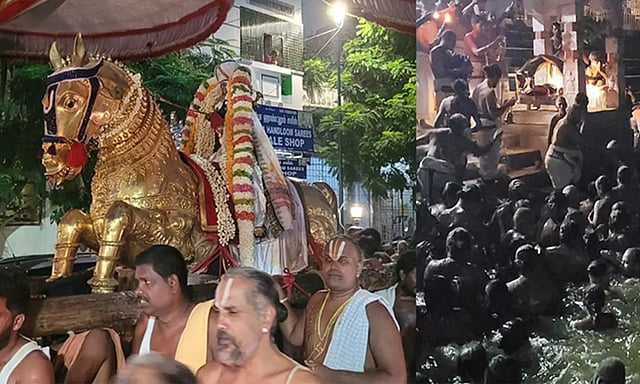 தீர்த்தவாரி உற்சவத்தை யொட்டி வசந்த மண்டபத்தில் ஸ்ரீதேவி பூதேவியுடன் எழுந்தருளிய வரதராஜ பெருமாளுக்கு மஞ்சள், சந்தனம், துளசி, உள்ளிட்டவைகளால் சிறப்பு திருமஞ்சனம் நடத்தப்பட்டு பஞ்சவர்ண மலர் மாலைகள் அணிவித்து சிறப்பு தூப தீப ஆராதனைகள் செய்யப்பட்டது.