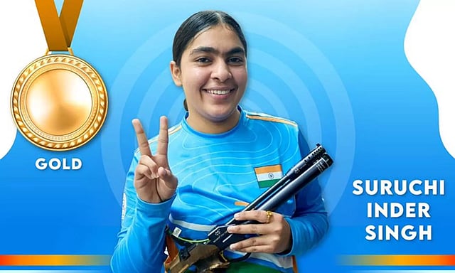 இந்நிலையில், பெண்களுக்கான 10 மீட்டர் ஏர் பிஸ்டல் பிரிவில் இந்திய வீராங்கனை சுருச்சி இந்தர் சிங் தங்கப் பதக்கம் கைப்பற்றினார். தொடர்ந்து 3-வது முறையாக உலக கோப்பை துப்பாக்கிச் சுடுதலில் தங்கம் வென்றுள்ளார் சுருச்சி.