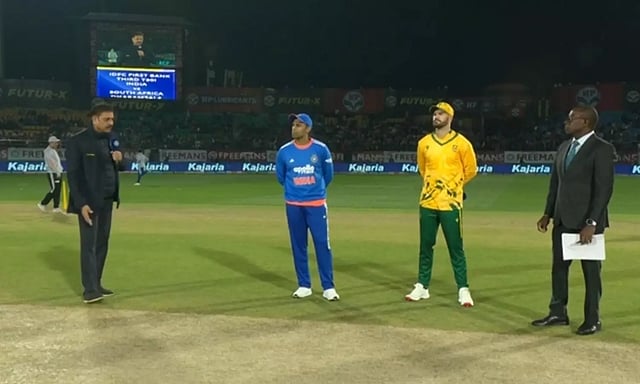 இந்நிலையில், தென் ஆப்பிரிக்கா அணிக்கு எதிரான 3வது டி20 போட்டிக்கான டாஸ் சுண்டப்பட்டது. இதில், டாஸ் வென்ற இந்திய அணி கேப்டன் சூர்யகுமார் பந்து வீச்சை தேர்வு செய்தார். இதனால், இந்த போட்டியில் தென் ஆப்பிரிக்கா அணி முதலாவதாக பேட்டிங் செய்ய களமிறங்கி உள்ளது.