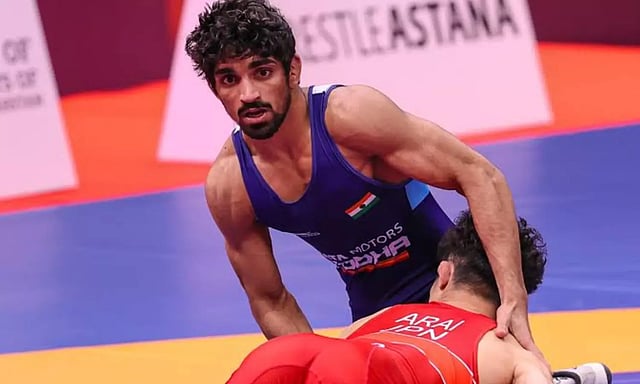 இறுதியில், அமன் ஷெராவத் 12-0 என்ற கணக்கில் வென்று அரையிறுதிக்கு முன்னேறினார். இன்று இரவு 9.45 மணிக்கு அரையிறுதி போட்டி நடைபெற்றது.