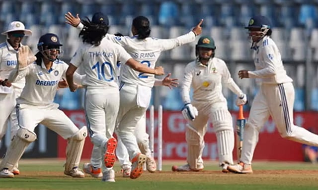 இந்தியா-ஆஸ்திரேலிய பெண்கள் அணிகள் மோதும் ஒரே ஒரு டெஸ்ட் போட்டி (4 நாள் ஆட்டம்) மும்பை வான்கடே மைதானத்தில் நடந்து வருகிறது. முதலில் பேட்டிங் செய்த ஆஸ்திரேலியா 219 ரன்னுக்கு ஆல்-அவுட் ஆனது.