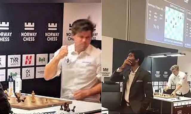 அப்போது, நார்வே செஸ் தொடரில் மேக்னஸ் கார்ல்சன் விரக்தியில் ஆவேசமடைந்து டேபிலை தட்டினார். இதன் வீடியோ வைரலாகி வருகிறது.