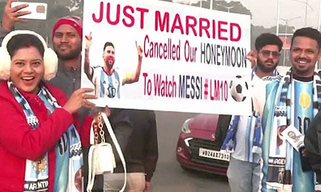 அவர் கொல்கத்தா சால்ட் லேக் மைதானத்தில் நடந்த நிகழ்ச்சியில் மெஸ்ஸி பங்கேற்றார். அவரை பார்ப்பதற்காக ஒரு தம்பதி தேனிலவை ரத்து செய்துள்ளது.