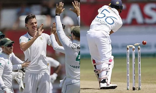 இதனை தொடர்ந்து இலங்கை அணி முதல் இன்னிங்சை தொடங்கியது. தென் ஆப்பிரிக்கா அணியின் வேகப்பந்து வீச்சை சமாளிக்க முடியாமல் அடுத்தடுத்து விக்கெட்டுகளை பறிகொடுத்தனர். 13.5 ஓவர்களை மட்டுமே தாக்குபிடித்த இலங்கை அணி 42 ரன்னில் ஆல் அவுட் ஆனது.