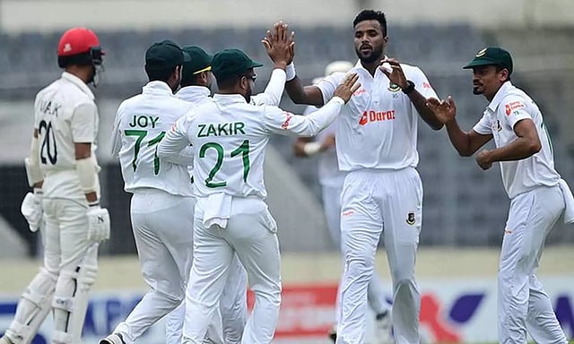 தொடங்கிய 7 ஓவரிலேயே வங்காளதேசம் அணி அனைத்து விக்கெட்டுகளையும் இழந்து 382 ரன்கள் எடுத்தது. ஆப்கானிஸ்தான் தரப்பில் நிஜாத் மசூத் 5 விக்கெட்டுகளை கைப்பற்றினார்.