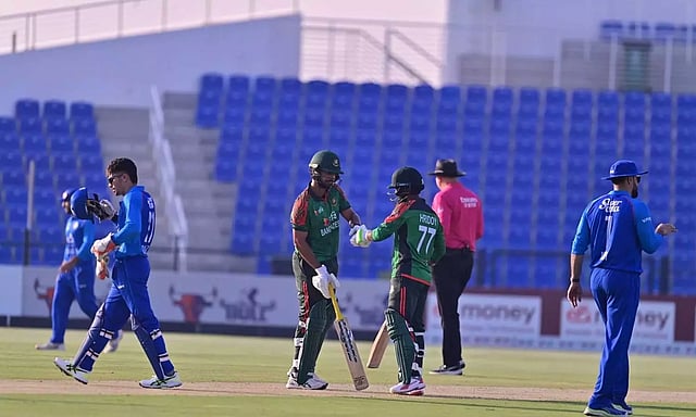 ஆப்கானிஸ்தான்- வங்கதேசம் அணிகளுக்கு இடையிலான 3 போட்டிகள் கொண்ட ஒருநாள் கிரிக்கெட் தொடர் அபுதாபியில் இன்று தொடங்கியது. டாஸ் வென்ற வங்கதேசம் பேட்டிங் தேர்வு செய்தது. அதன்படி முதலில் களம் இறங்கிய வங்கதேச அணியால் 221 ரன்கள் மட்டுமே அடிக்க முடிந்தது. ஓமர்சார், ரஷித் கான் ஆகியோர் தலா 3 விக்கெட் வீழ்த்த வங்கதேசம் 48.5 ஓவரில் ஆல்அவுட் ஆனது.
