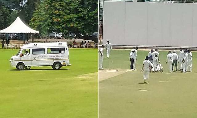 இந்நிலையில், நேற்று 2-வது நாள் ஆட்டம் நடைபெற்றது. இதில் மத்திய மண்டல அணி பேட்டிங்கில் தடுமாறியது. அப்போது பேட்டிங் செய்து கொண்டிருந் வெங்கடேஷ் அய்யர் 6 ரன்கள் எடுத்திருந்தபோது காஜா என்ற வீரர் பந்தை பீல்டிங் செய்யும்போது எறிந்தார். அது, வெங்கடேஷ் அய்யரின் பின் தலையில் பட்டது. இதனால் வலியால் துடித்தார்.