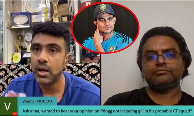 அப்போது நேரலையில் ரசிகர் ஒருவர் "Pdogg தன்னுடைய சாம்பியன்ஸ் டிராபி அணியில் சுப்மன் கில்லை தேர்வு செய்யவில்லை என்பதை குறித்து நீங்கள் என்ன நினைக்கிறீர்கள்" என்று அஷ்வினிடம் கேள்வி எழுப்பியுள்ளார்.