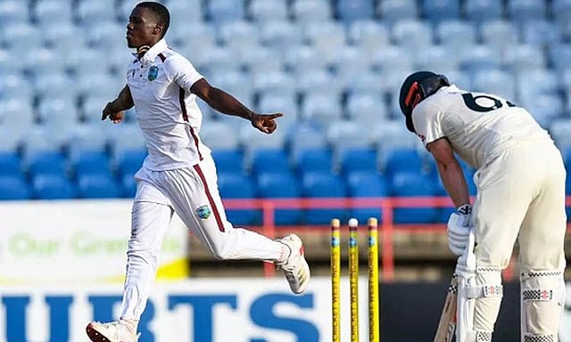 ஷமர் ஜோசப் 4 விக்கெட்டும், கெய்டன் ஷீல்ஸ், ஜஸ்டின் கிரிவ்ஸ் தலா 3 விக்கெட்டும் வீழ்த்தினார்கள்.
