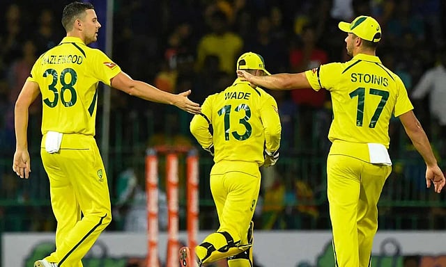 ஆஸ்திரேலியா சார்பில் ஹேசில்வுட் 4 விக்கெட், மிட்செல் ஸ்டார்க் 3 விக்கெட்டும் வீழ்த்தினர்.