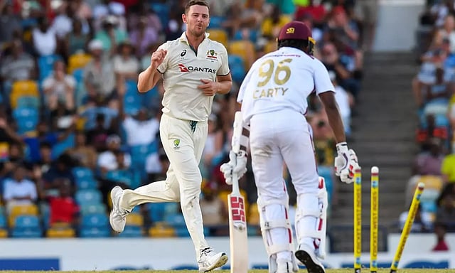அதன்படி, முதலில் ஆடிய ஆஸ்திரேலியா வெஸ்ட் இண்டீஸ் பந்துவீச்சை தாக்குப்பிடிக்க முடியாமல் அடுத்தடுத்து விக்கெட்டுகளை இழந்து முதல் இன்னிங்சில் 180 ரன்களுக்கு ஆல் அவுட்டானது. டிராவில் ஹெட் 59 ரன்னும், கவாஜா 47 ரன்னும் எடுத்தனர்.