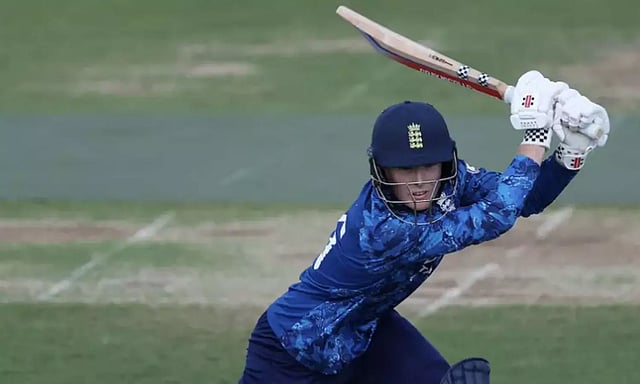 அதன்படி, முதலில் ஆடிய இங்கிலாந்து அணி நிர்ணயிக்கப்பட்ட 50 ஓவரில் 7 விக்கெட்டுக்கு 277 ரன்கள் சேர்த்துள்ளது. அந்த அணியின் கேப்டன் தாமஸ் ரூ பொறுப்புடன் ஆடி சதமடித்தார். காலேப் பல்கனர் 40 ரன்கள் எடுத்தார்.