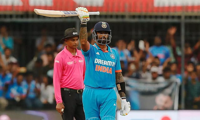 கேமரூன் கிரீன் வீசிய 43-வது ஓவரில் சூர்யகுமார் யாதவ் தொடர்ந்து 4 சிக்சர்கள் அடித்து அசத்தினார்.