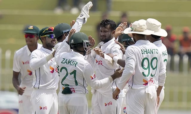 இதையடுத்து, 30 ரன்கள் எடுத்தால் வெற்றி என்ற இலக்குடன் களமிறங்கிய வங்கதேசம் விக்கெட் இழப்பின்றி எளிதில் வெற்றி பெற்று வரலாற்று சாதனை படைத்தது. இதன்மூலம் 2 போட்டிகள் கொண்ட டெஸ்ட் தொடரில் வங்கதேசம் 1-0 என முன்னிலை வகிக்கிறது.