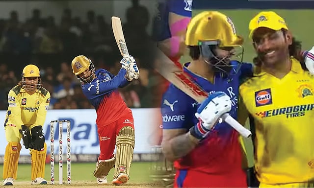 பின்னர் இணைந்த படிதார் - க்ரீன் ஜோடி சென்னை அணியின் பந்துவீச்சை நாலாபக்கமும் சித்தடித்தனர். அதிரடியாக விளையாடிய படிதார் 41 ரன்னில் ஆட்டமிழந்தார். கடைசி நேரத்தில் அதிரடி காட்டிய தினேஷ் கார்த்திக் 14 ரென்னும் மேக்ஸ்வெல் 16 ரென்னும் அடித்து ஆட்டமிழந்தனர். கிறீன் 38 ரன்கள் அடித்து கடைசி வரை ஆட்டமிழக்காமல் இருந்தார். 20 ஓவர் முடிவில் பெங்களூரு அணி 218 ரன்கள் குவித்தது.