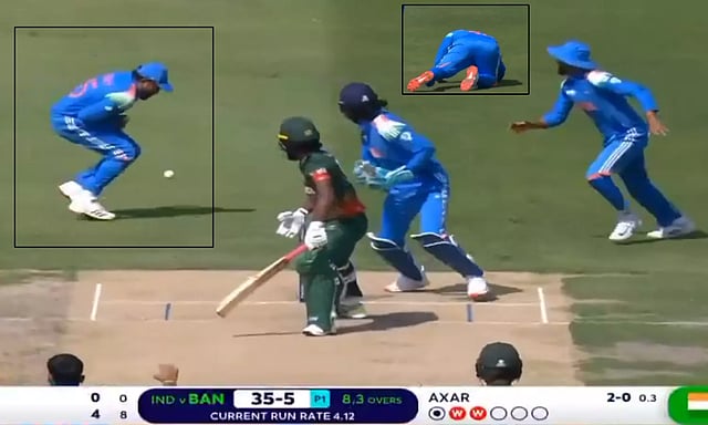 இந்திய அணியின் அபார பந்துவீச்சு காரணமாக வங்காளதேசம் அணி தொடக்கத்திலேயே விக்கெட்டுகளை இழந்து தடுமாறியது. அந்த வகையில், போட்டியின் 8-வது ஓவரை அக்சர் படேல் வீசினார். இந்த ஓவரின் இரண்டாவது பந்தில் வங்காளதேசம் அணியின் தன்சித் ஹாசன் (25) தனது விக்கெட்டை பறிக் கொடுத்து பெவிலியன் திரும்பினார்.