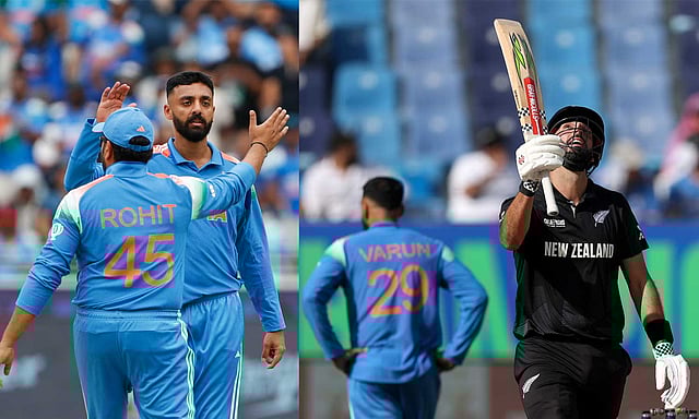 இப்போட்டியில் 8 ஆவது ஓவரை வீசிய வருண் சக்கரவர்த்தி வில் யங் விக்கெட்டை வீழ்த்தினார். இதனையடுத்து 11 ஓவரை வீசிய குல்தீப் யாதவ் முதல் பந்திலேயே ரச்சின் ரவீந்திரா விக்கெட்டை வீழ்த்தினார். அடுத்ததாக 13 ஆவது ஓவரை வீசிய குல்தீப் வில்லியம்சன் விக்கெட்டையும் வீழ்த்தி அசத்தினார்.