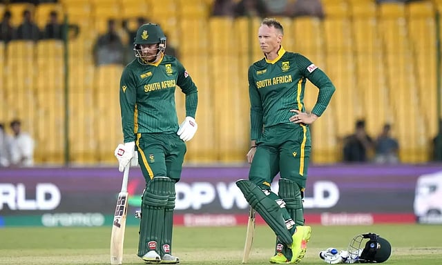 பின்னர் 180 ரன்கள் அடித்தால் வெற்றி என்ற இலக்குடன் தென் ஆப்பிரிக்கா அணி களம் இறங்கியது. ரியான் ரிக்கெல்டன், டிரிஸ்டன் ஸ்டப்ஸ் ஆகியோர் தொடக்க வீரர்களாக களம் இறங்கினர். ஸ்டப்ஸ் ரன்ஏதும் எடுக்காமல் ஆட்டமிழந்தார். ரிக்கெல்டன் 27 ரன்னில் வெளியேறினார்.