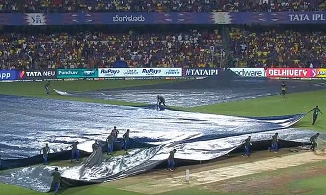 இப்போட்டியில் டாஸ் வென்ற சென்னை அணி கேப்டன் ருதுராஜ் பந்துவீச்சை தேர்வு செய்தார். அதன்படி பெங்களூரு அணி முதலில் பேட்டிங் செய்தது. 3 ஓவர் முடிவில் 31 ரன்கள் அடித்திருந்த நிலையில் மழை குறுக்கிட்டதால் போட்டி தற்காலிகமாக நிறுத்தப்பட்டுள்ளது. இப்போட்டியில் கோலி 9 பந்துகளில் 19 ரன்களும், டு பிளிசிஸ் 9 பந்துகளில் 12 ரன்களும் அடித்து ஆட்டமிழக்காமல் களத்தில் உள்ளனர்.